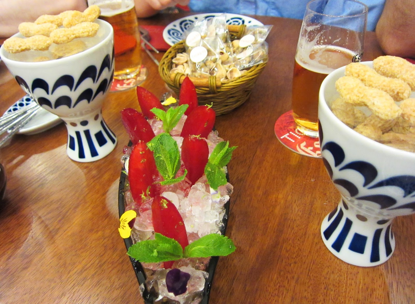 The waiter was really helpful in describing their menu and food focus. He suggested that if we're open to most foods, that we let them pick the dishes for us. With that, we happily obliged. The first round of food was so beautiful. False peanuts (peanut shaped nut treats), tempura of pistachios (fried crunchy pistachios), solid cocktail of apple and hibiscus (sweet tequila soaked apple wedges).