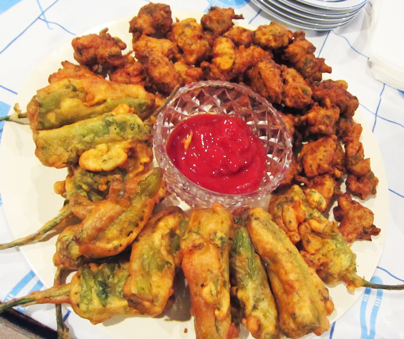 And my last birthday meal is my Parsi dinner by Mrs. Pattis Magician. I pick what I want to eat and she makes it. To start, I asked for budja (onion fritters) and fried peppers. The latter is a lottery of which are spicy and which are sweet.