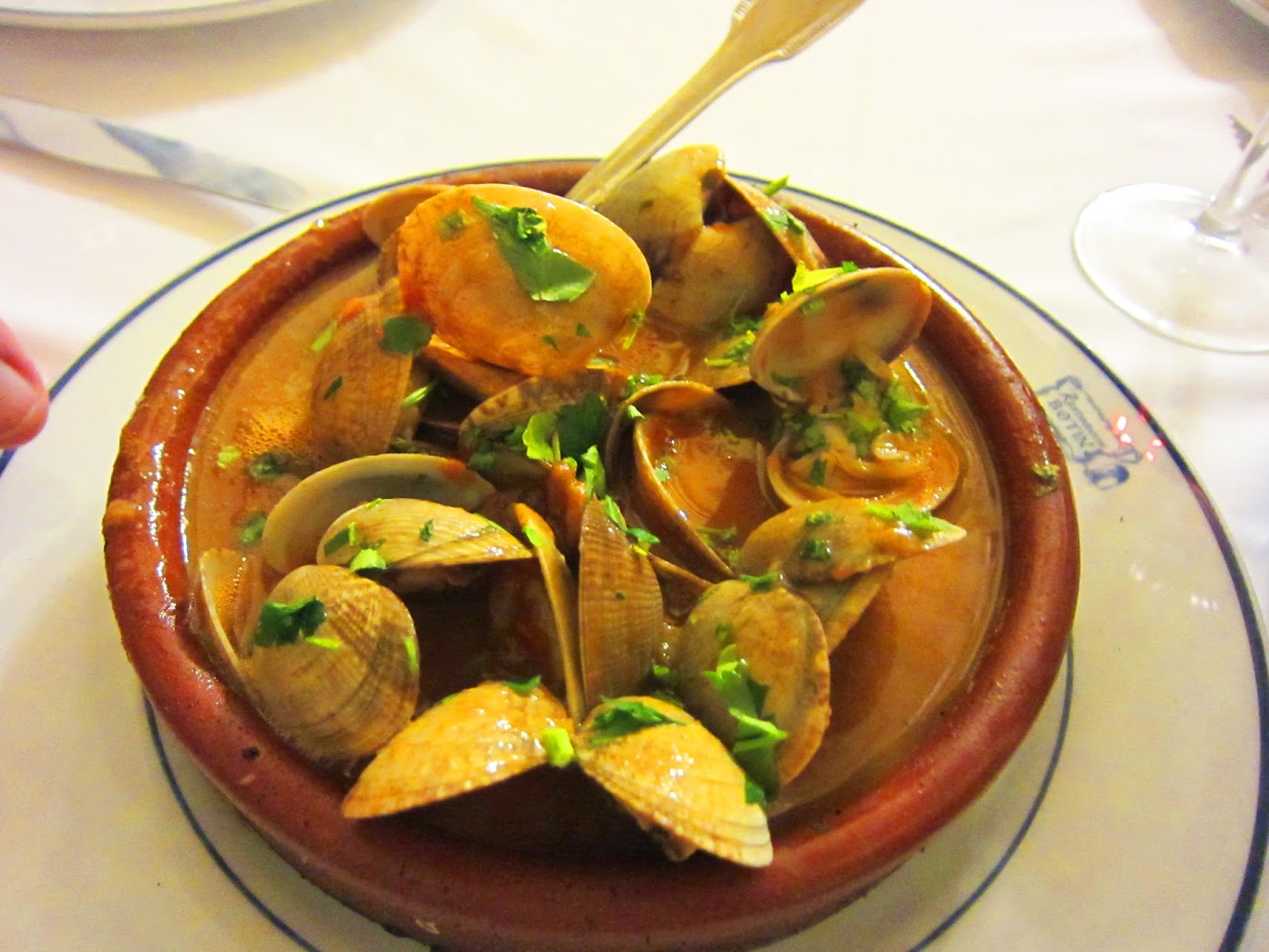 After all that meat, we needed to burn off those calories in time for dinner. Lots of walking around and site seeing did the trick. A bit too much in fact so we headed back to the hotel and relaxed for a bit before dinner. I reminded everyone that our reservation that night was some heavy eating. So no filling up prior to the meal. We went to Sobrino de Botin (also known as El Botin) which is a rotisserie restaurant. It's pretty famous and is lauded as the oldest running restaurant in Spain and maybe the world.