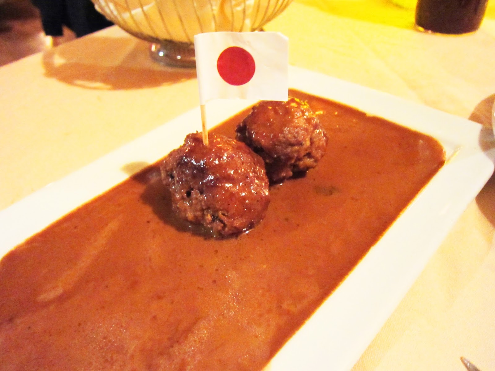 To start, we tried the Kobe meatballs ($15) which come 4 to a dish. I don't know why they put a Japan flag on there because it was clearly American Kobe. Anyway, tender meatballs in a thick wine sauce. It tasted good but I always feel that kobe or even rib eye is lost when ground up. No need for the marbling of fat within the meat. You can just add fat to the grinder with leaner meat. Personally, I'd say skip.