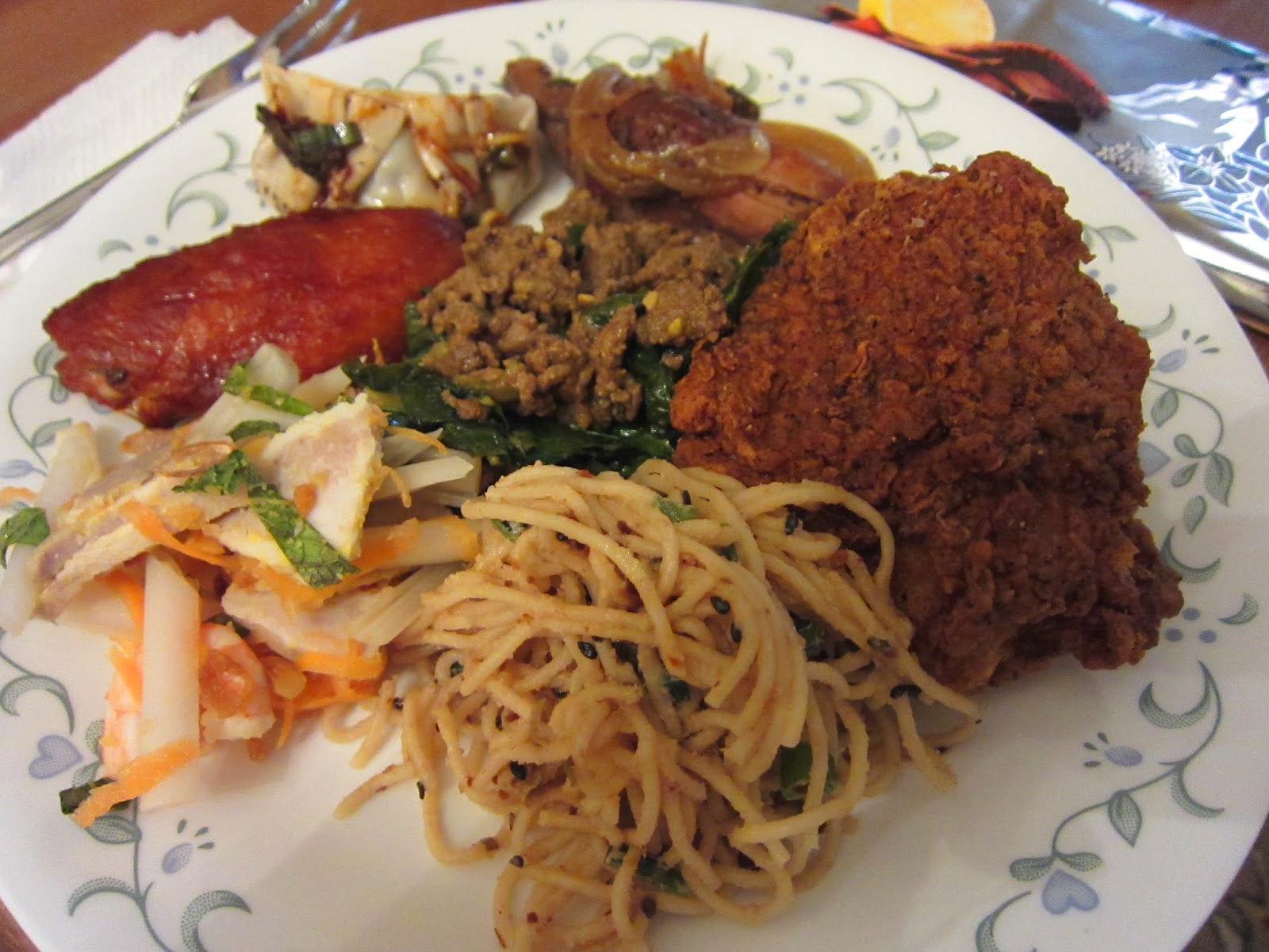 This is my first plate of many that night. A little of of what was served first. Then I went back for other items that were being heated up. Oh and the dessert. Don't forget about those.