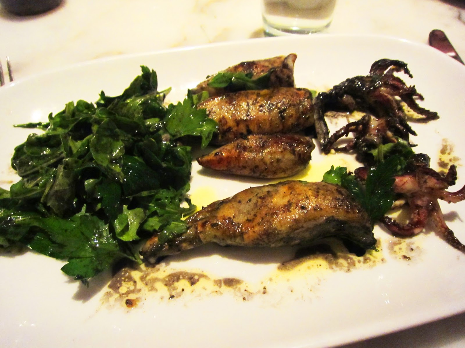 To start, I had the Calamari alla Piastra ($16) which was grilled whole squid with red hot pepper and arugula salad. The squid was cooked nicely and I enjoyed it being left whole with tentacles and all. Inside, they left the ink sack as well so it became a sauce. I enjoyed this and was the perfect amount of food to start the night.