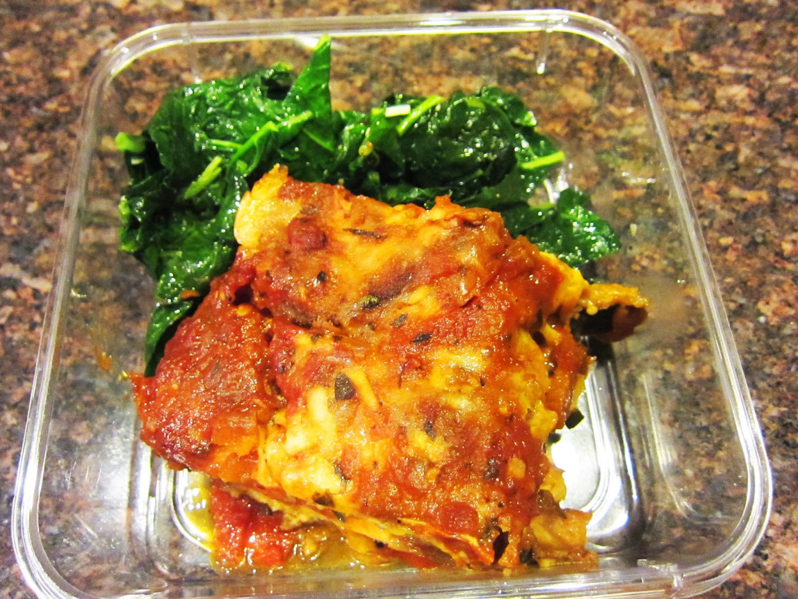So my lunch for the week: Eggplant Parmesan and Sauteed Kale