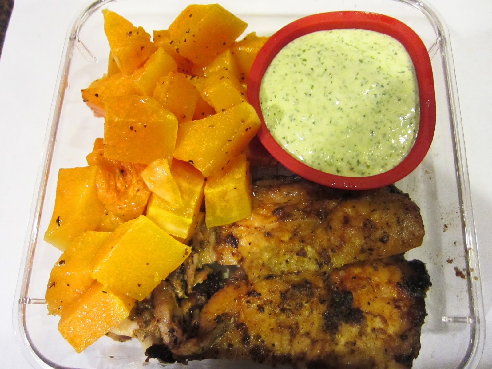 So my lunch for the week: Peruvian Chicken with Aji Verde Sauce and Roasted Butternut Squash
