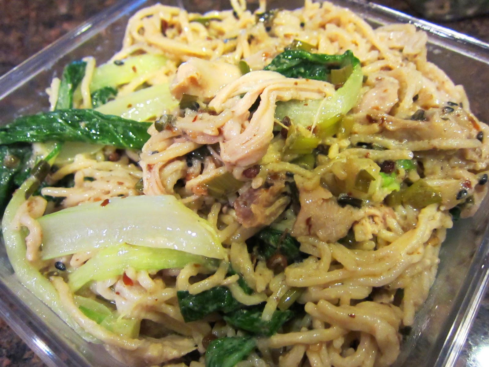 So my lunch for the week: Sesame Noodles with Chicken and Bok Choy